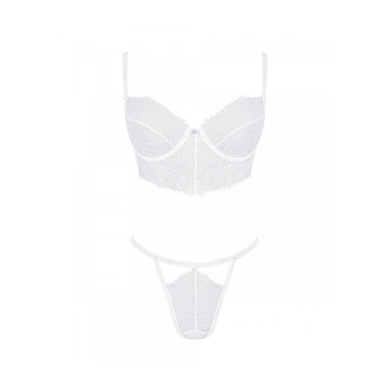El conjunto Bianelle es una propuesta aparentemente inocente, ¡pero te garantizamos que calentará hasta los corazones más helados! El sujetador sensual con cintura realzada enfatiza fenomenalmente la figura, y el tentador blanco crea una hermosa armonía con el tono de la piel. ¡El ribete de encaje femenino agrega estilo y elegancia, y la tanga sexy envolverá tu cuerpo en la delicadeza de sus materiales y te permitirá disfrutar aún más!