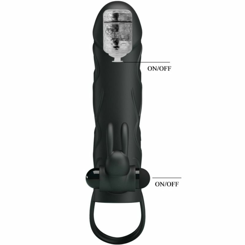 Porque el tamaño si importa, ahora Pretty Love trae esta funda de silicona para que puedas alcanzar hasta los 15.2 cm. Está hecho con silicona de primera calidad, resistente al agua para que puedas usarla en la ducha o spa, con anillo de sujeción en los testículos e incorpora una bala vibradora y rabbit con lo que aumentareis el placer en pareja. Además de ganar unos centímetros en longitud y grosor de más, es perfecto para personas con eyaculación precoz o disfunción erectil para poder seguir disfrutando.