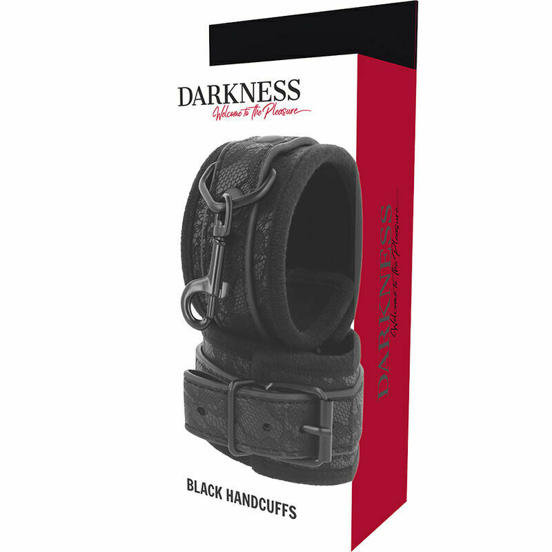 Entregarte a los sentidos y ceder al deseo no te costará nada con esta hermosa esposa de la colección bondage de Darkness. Exquisitamente diseñado en brocadonegro y con anillos de calidad superior y broches. Darkness lleva el bondeg a a un nuevo nivel.