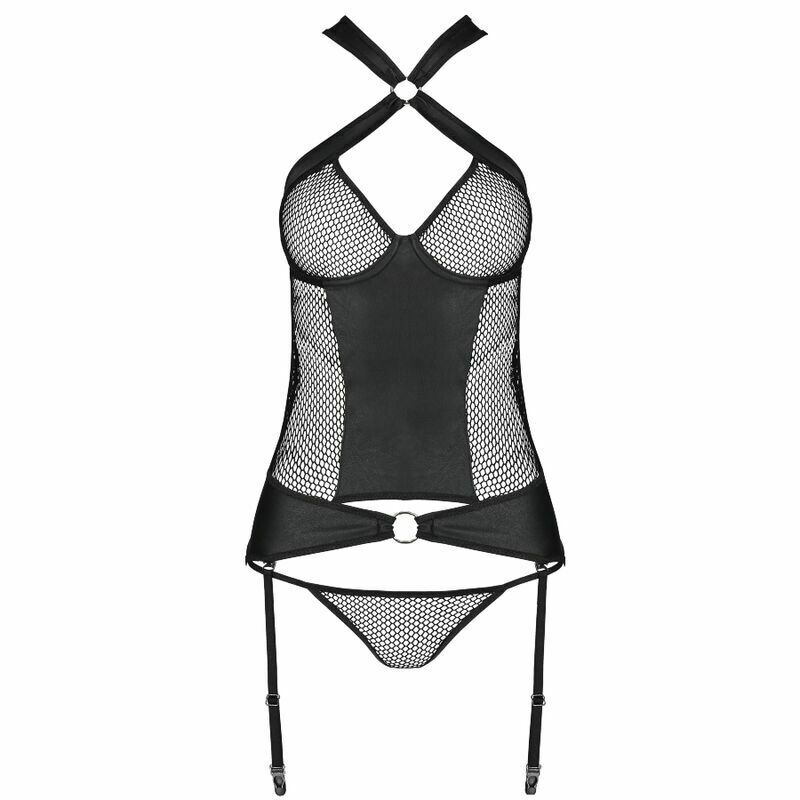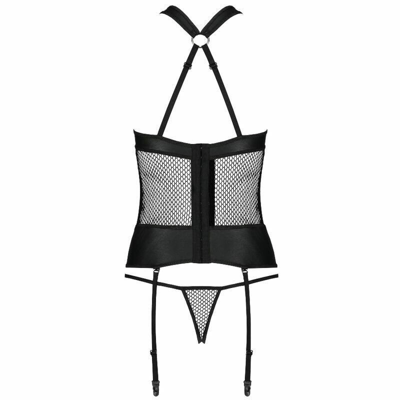 El corsé Amanda es una innovadora combinación de cuero detrás de una malla sensual, cuya tarea no es solo revelar seductoramente lo más femenino, sino también enfatizarlos. Las juntas doradas en forma de ruedas dan todo el carácter.